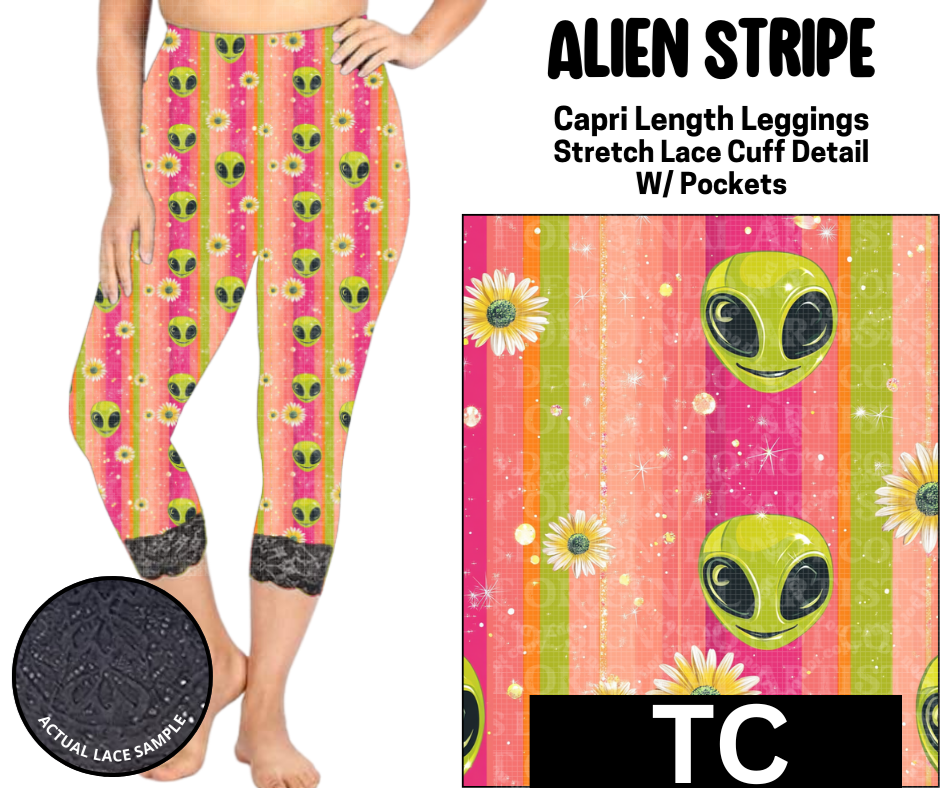 Alien Stripe Lace Cuff Capris w/ Pockets