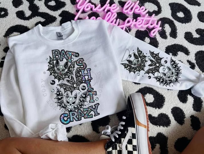 BAT CRAZY BLING SWEATSHIRT W/ SLEEVE PRINT