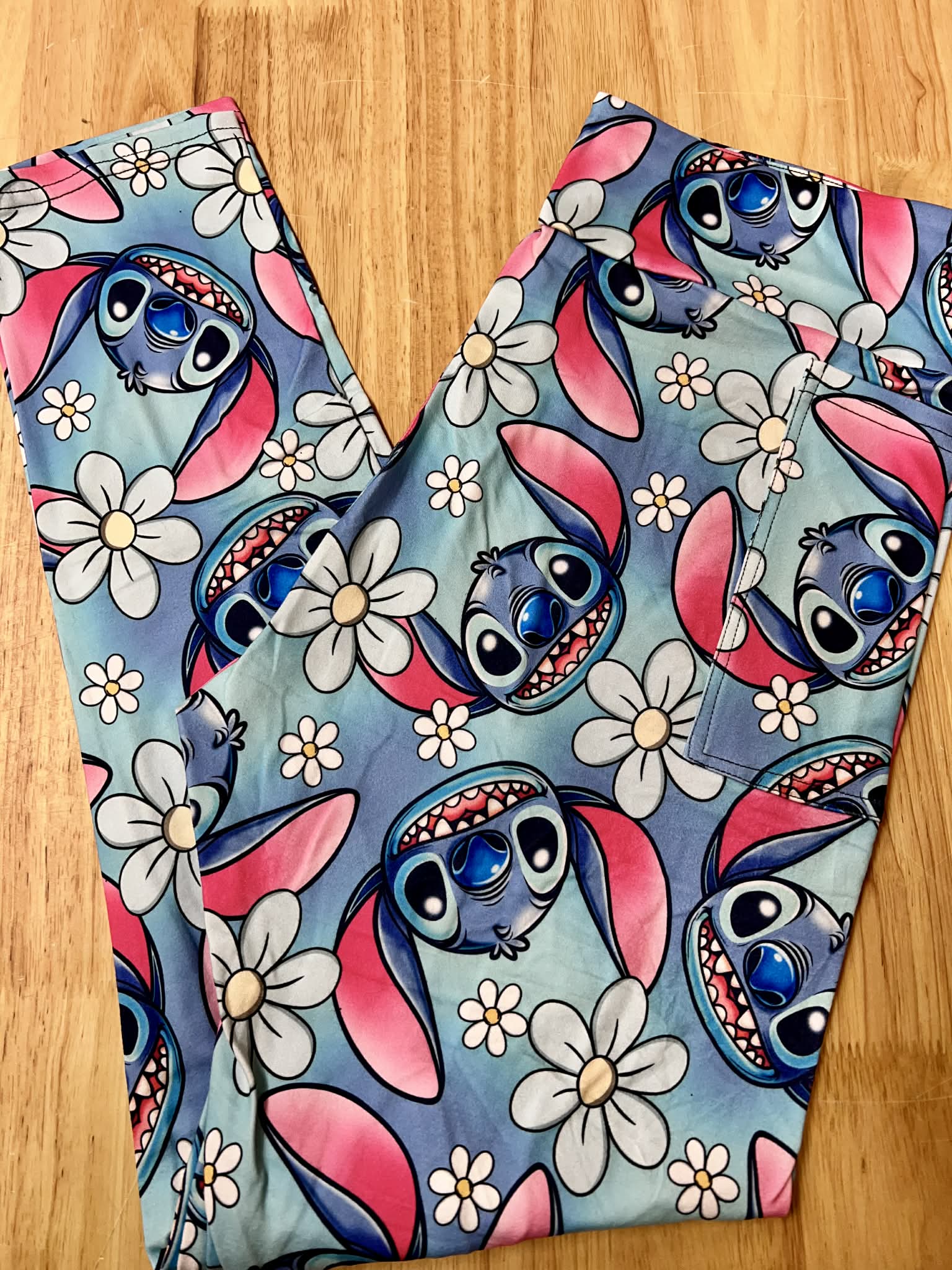 RTS - Blue Aloha Alien Biker/Capris/Leggings with High Side Pockets