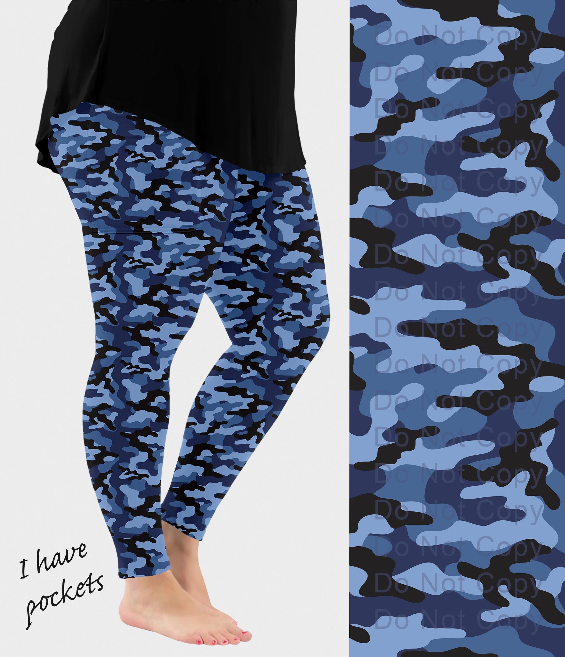 RTS - Blue Camo Leggings w/ Pockets